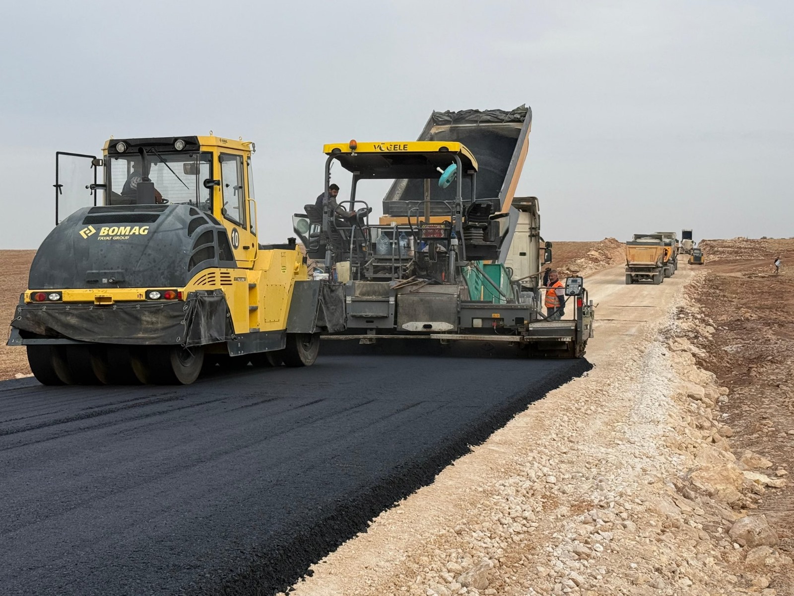 Şanlıurfa Büyükşehir Belediye Başkanı Mehmet Kasım Gülpınar’ın vizyonu ve talimatları doğrultusunda, Halfeti–Bozova grup yolunda asfalt serimi çalışmaları tüm hızıyla devam ediyor.